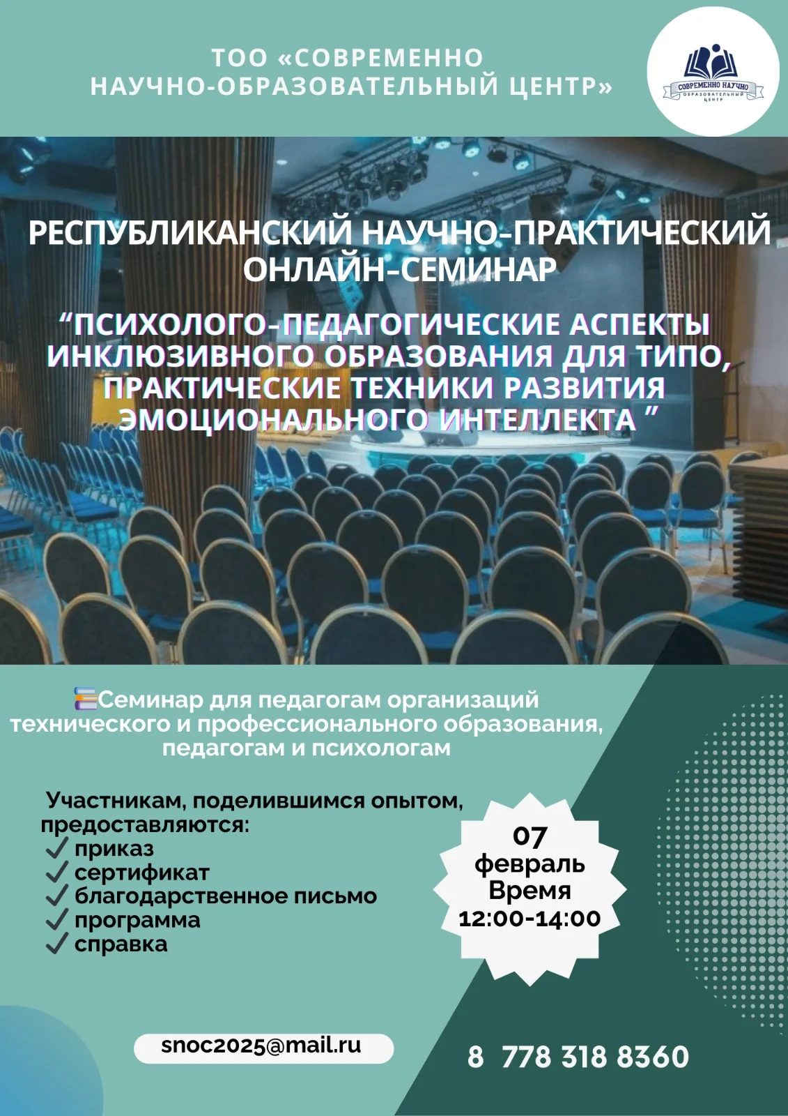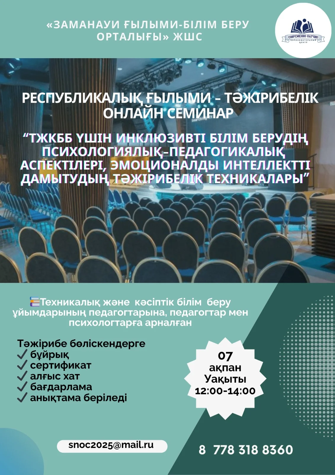 Республиканский семинар для педагогам организаций технического и профессионального образования, педагогам и психологам